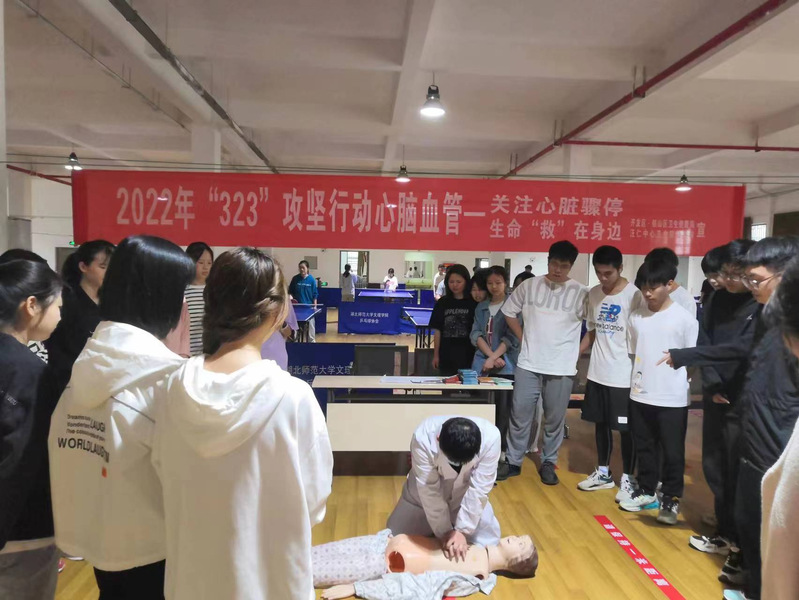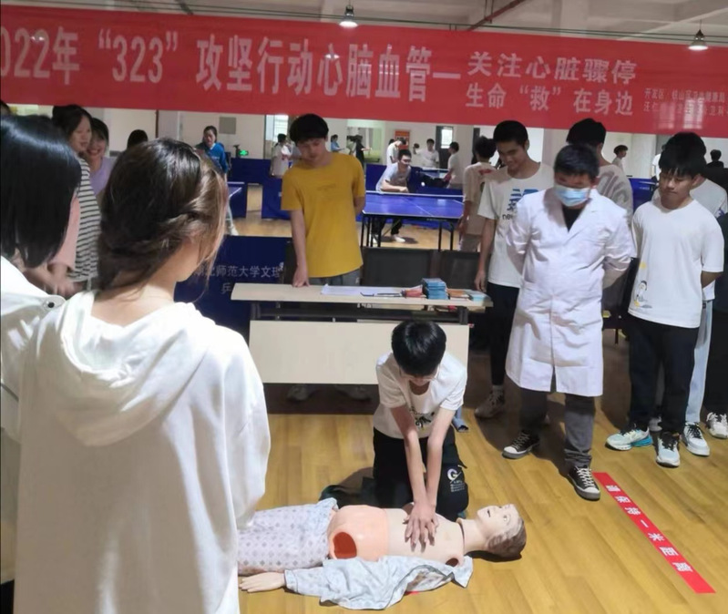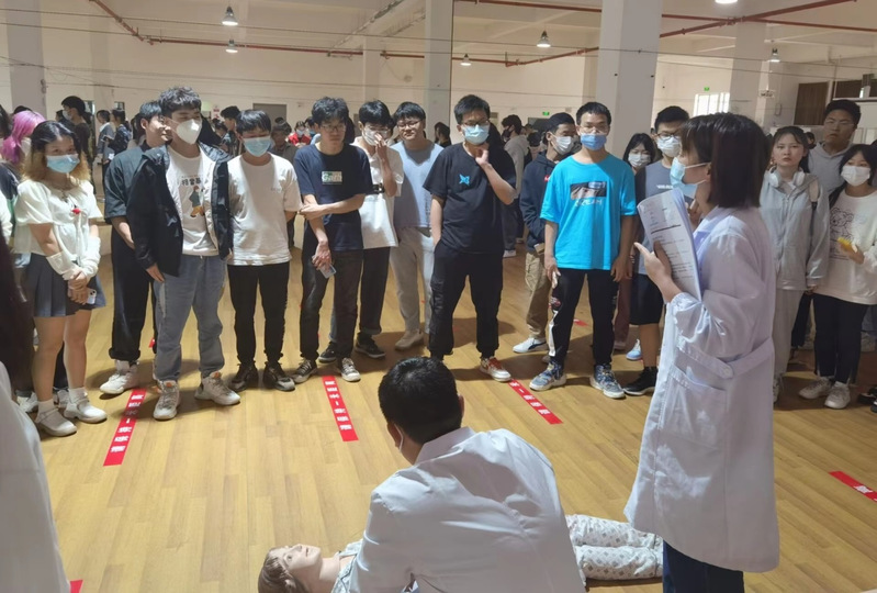为贯彻落实省教育厅办公室《关于做好2022年教育系统防灾减灾救灾工作的通知》和市教育局《关于做好市教育系统 2022 年全国防灾减灾日有关工作的通知》要求,进一步宣传普及防灾减灾、自救自护知识,增强广大师生灾害风险防范意识,提高自救互救能力。5月10日下午,8xbet(中国)邀请开发区﹒铁山区卫健局汪仁卫生院医护人员来校,开展了心肺复苏技能培训。100余名师生代表参加培训。