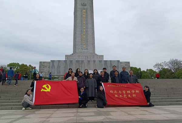 2023年4月5日,时值清明节,经济与管理学部教工党支部组织全体党员教师和入党积极分子前往湘鄂赣边区鄂东南革命烈士陵园,开展以“深悟践行二十大,追思缅怀忆先烈”的党史学习教育主题实践活动。重温红色革命峥嵘岁月,感受革命先烈不屈不挠的斗志和无私无畏的精神,传承红色基因,厚植理想信念。
