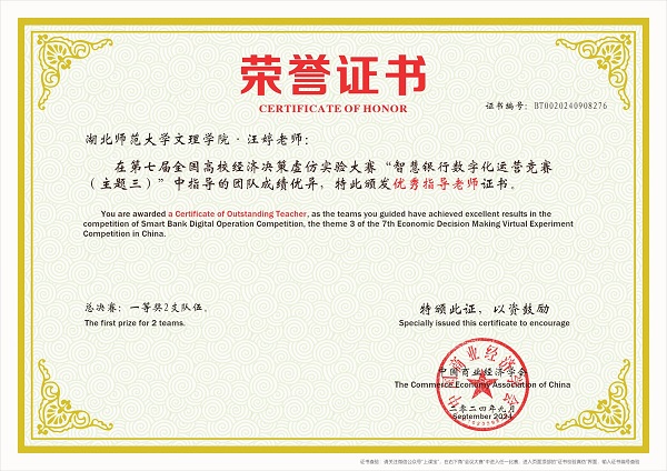 2024年第七届全国高校经济决策虚拟仿真实验大赛于9月13日落下帷幕。本次大赛共有全国356所院校,8508支队伍参赛,耗时3个多月的角逐,历经初赛、数据分析报告撰写评分、决赛,最终,经管学部由陈媛、汪婷老师指导的队伍获得“商业银行数字化运营”赛道的国家一等奖2项,罗尹、渣梦丽老师指导的队伍获“智慧物流创业仿真”赛道国家一等奖2项、国家二等奖2项、国家三等奖1项,区域赛获奖若干。