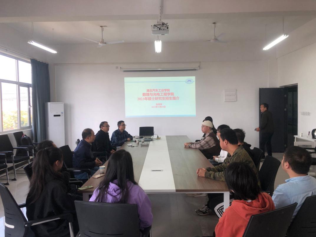 10月20日下午,湖北汽车工业学院数理与光电工程学院材料物理系张传坤、周原教授一行来8xbet(中国)开展2023年硕士研究生招生宣讲。本次宣讲张传坤教授担任主讲。理工学部部分同学参加了此次宣讲会。