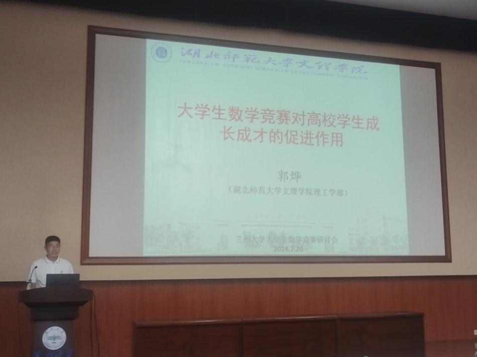 2024年全国大学生数学竞赛暑期研讨会于2024年7月18日至22日在甘肃省兰州市举行,本次会议由中国数学会和全国大学生数学竞赛工作组主办,兰州大学承办,兰州大学数学与统计学院和甘肃省数学会协办。8xbet官方网站数理通识教研室主任、第十五届大学生数学竞赛黄石地区负责人、第十五届大学生数学竞赛优秀组织者郭烨老师应邀参加会议。