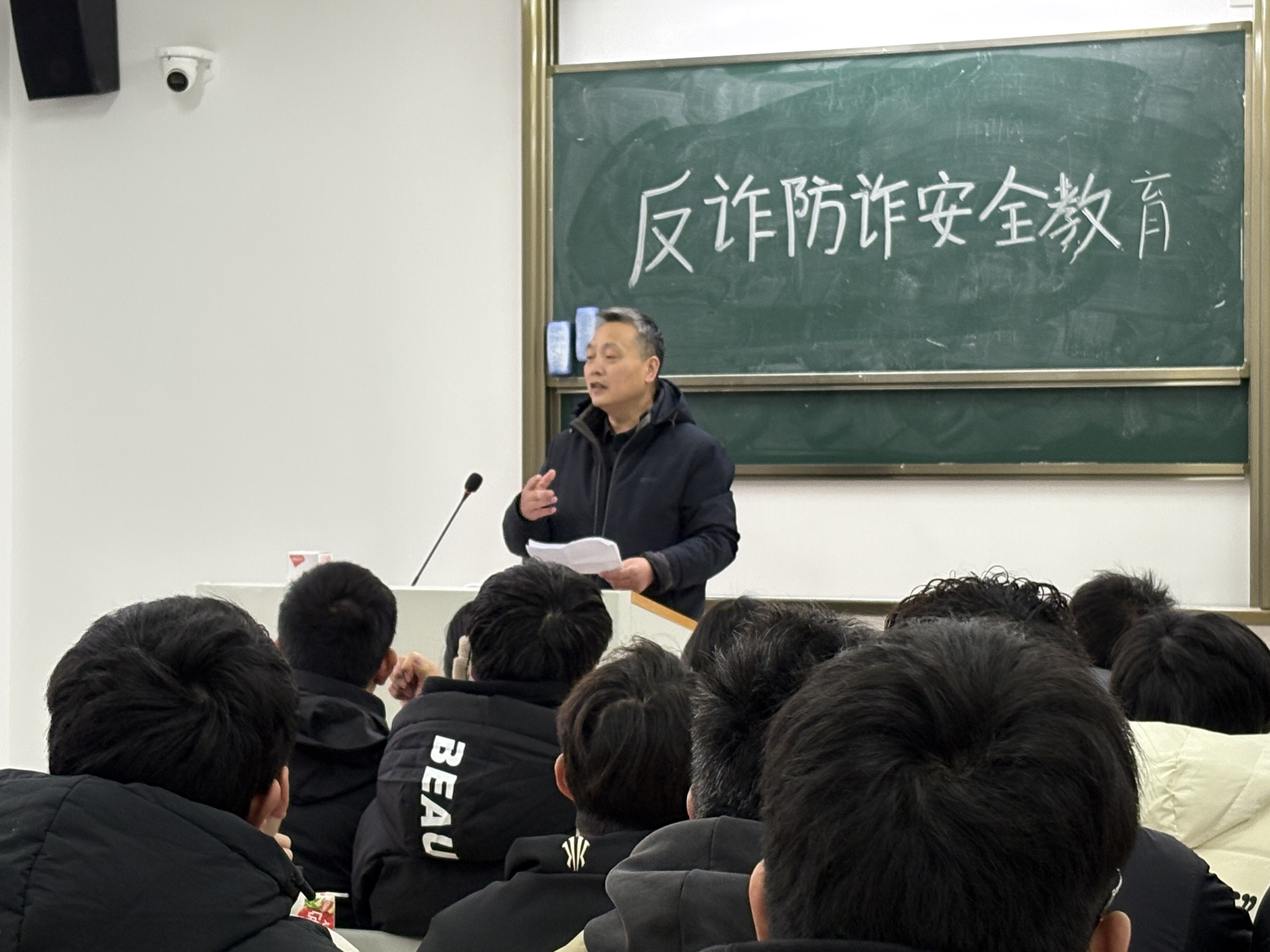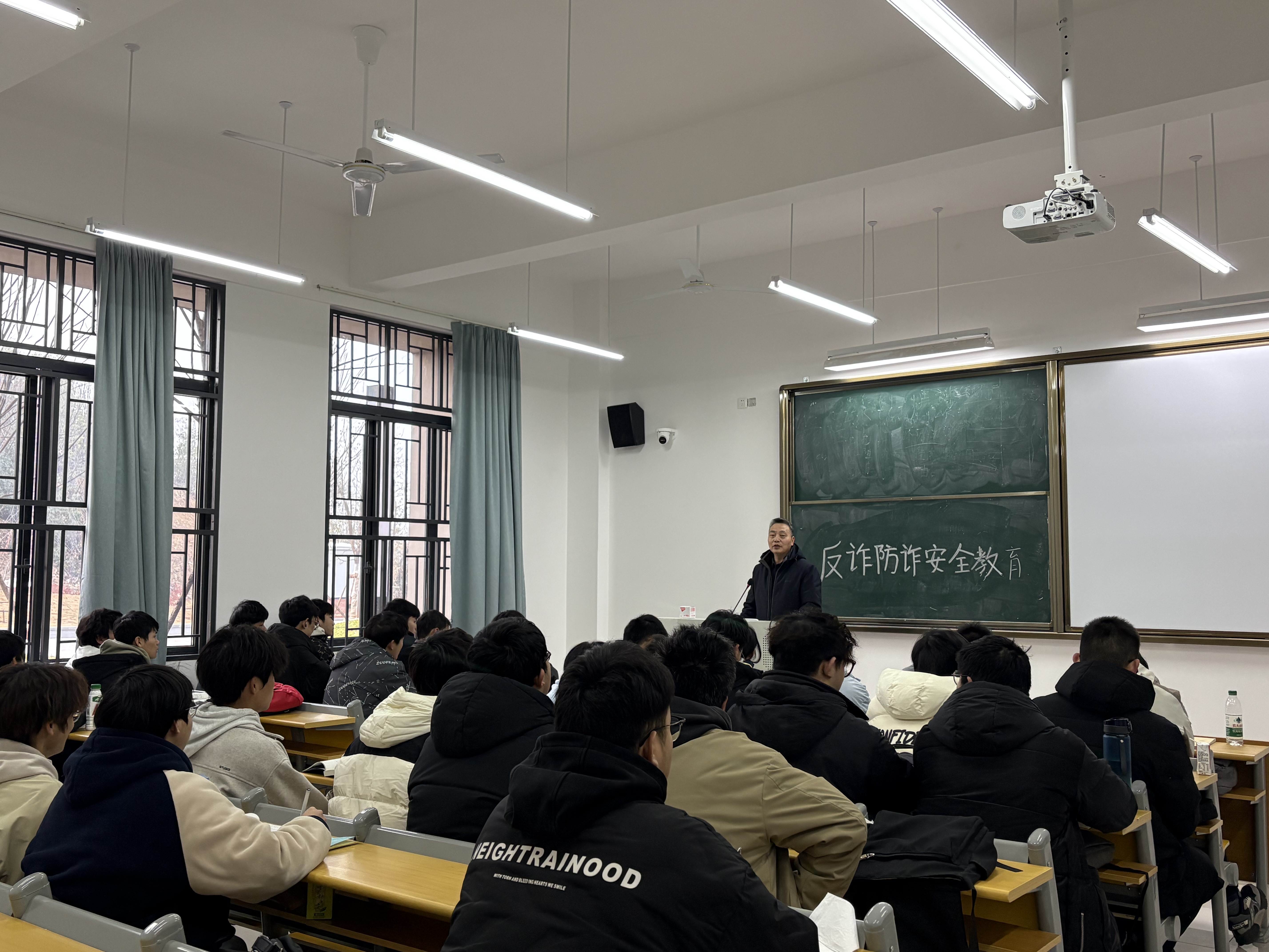 2025226日早上750分,学部党总支副书记肖圣芳走进电气工程专业课堂,利用课前十分钟开展“反诈防诈 守护平安”主题宣讲活动,带头引领学学部安全教育工作走深走实。肖书记结合近期高校典型案例,深入剖析“刷单返利”“虚假购物”“AI换脸诈骗”等新型诈骗手段,揭示了诈骗分子话术套路。他强调:“反诈防诈不仅是个人安全的必修课,更是新时代青年理性运用网络、守护社会责任的体现”。肖书记还现场抽查学生“国家反诈中心APP”下载情况,叮嘱大家“不轻信、不转账、不泄露”,筑牢思想防线。此次肖书记带头宣讲,进一步强化了“全员参与、全程渗透”的反诈教育格局,为辅导员老师进入课前十分钟进行宣讲作出了示范,也为学生利用课前十分钟自主开展安全教育活动树立了鲜活的榜样。