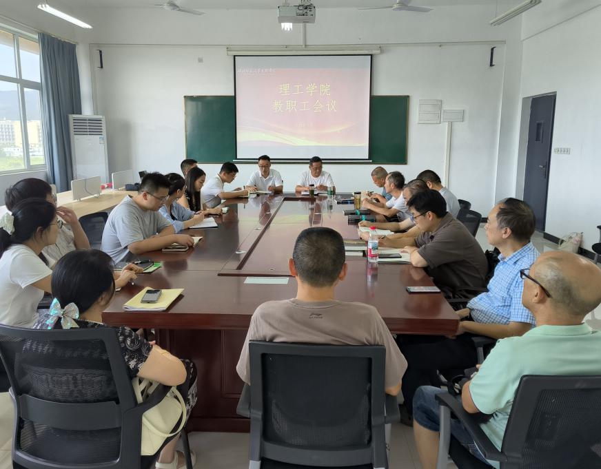 金秋伊始,万象更新。9月17日下午,理工学院在学院会议室隆重召开新学期第一次全体教职工会议,统一思想、明确目标,全面启动新学院建设进程。学院副院长潘继斌、党总支副书记张弛、各教研室主任、全体辅导员、专任教师及行政秘书、教学秘书共同参会。会议由张弛书记主持。