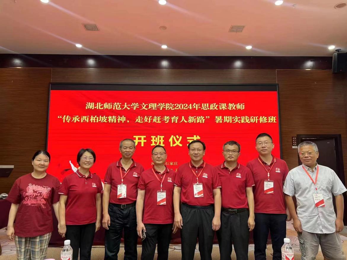 7月16日,8xbet官方网站2024年思政课教师“传承西柏坡精神,走好赶考育人新路”暑期实践研修班在全国高校思想政治理论课教师研修基地(河北师范大学)顺利开班。校党委书记杨邓红、马克思主义学部参训教师参加了开班仪式。