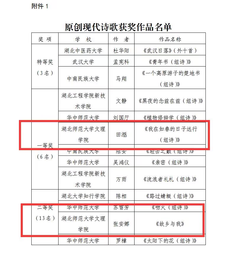 人文学部3名学子在湖北省高校第三十八届“一二.九”诗歌散文大赛中喜获佳绩