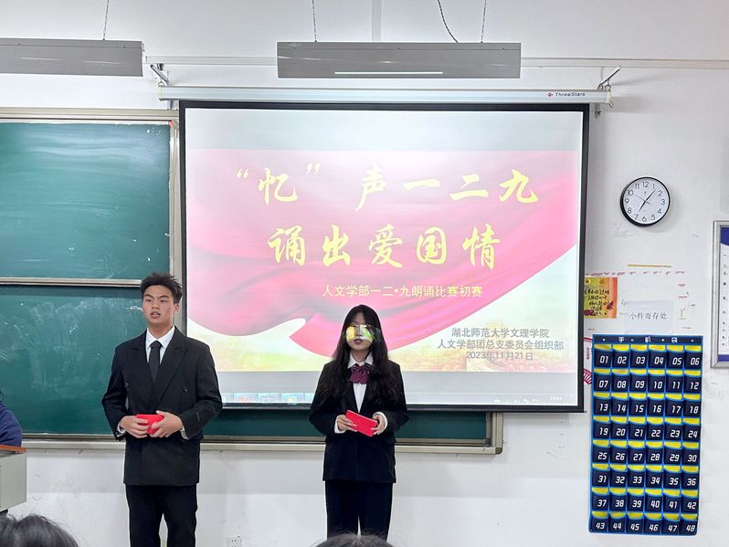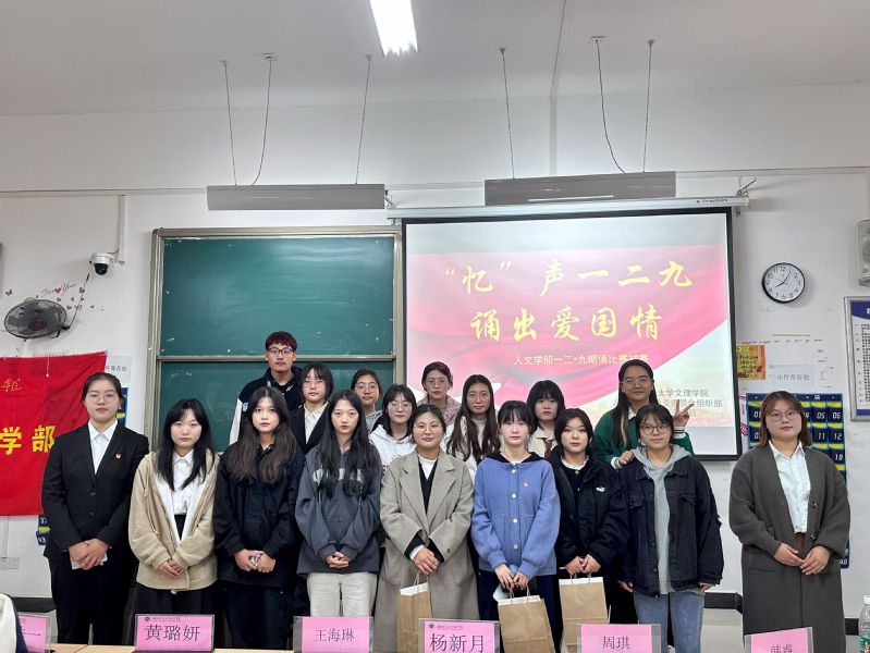 为纪念“一二九”运动,8xbet(中国)人文学部团学组织部于11月21日晚上七点在教室1B207举行主题为“忆声一二九诵出爱国情”的诗词朗诵比赛。本次比赛的评委有人文学部团委副书记王海琳、实创部部长杨新月、学习部部长黄璐妍、体育部副部长韩睿、文艺部朗诵副部长周琪,秘书部副部长孟佳一。 在主持人介绍完此次比赛规则以及评委人员后,比赛正式开始。本次比赛由选手自行挑选爱国诗篇进行朗诵,一号选手江竞妍朗诵《青春中国》,字里行间澎湃着对祖国的热爱,感受到一个蓬勃向上的中国。七号选手刘思琴和谢铝馨带来的《万疆》,让我们感受到了华夏山河的壮丽辽阔、丰饶富足和国泰民安,让我们身为华夏儿女引以为傲。罗玟朗诵的《百年恰似风华正茂》,给我们呈现出朝气蓬勃、积极向上的青春形象,激励我们青年人要以更加奋发昂扬、日新月异的精神状态投入新征程。比赛过程中,选手们声情并茂的朗诵诗歌,诵出了铿锵有力的报国赤心,诵出了爱国者舍身为国的碧血丹心。通过本次比赛警醒我们作为年轻一代,绝对不能失去“一二九”运动传承下来的爱国主义精神,要有与民族山河共存亡的气魄。 “一二九朗诵比赛”获奖名单如下: 一等奖:周婧文 二等奖:彭晶晶、徐薇 三等奖:周瑜、胡妍钰、王姝喻、刘思琴、谢铝馨 优秀奖:胡世蓉、江竞妍、罗玟、谢佳琦