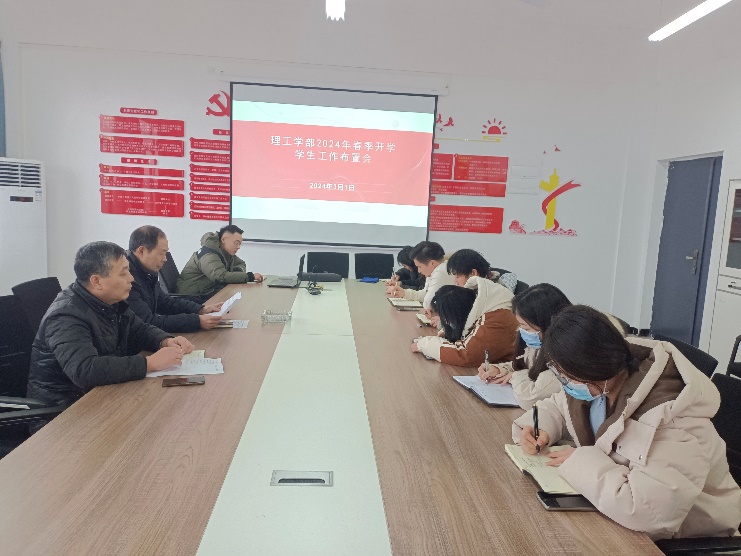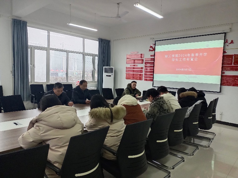 2024年3月1日下午,8xbet官方网站理工学部在4#311会议室召开全体辅导员会议,学习传达学校2024年春季干部大会会议精神并部署新学期工作。会议由学工办副主任张弛老师主持,学部主任傅朝金、学部党总支副书记肖圣芳及全体辅导员参会。
