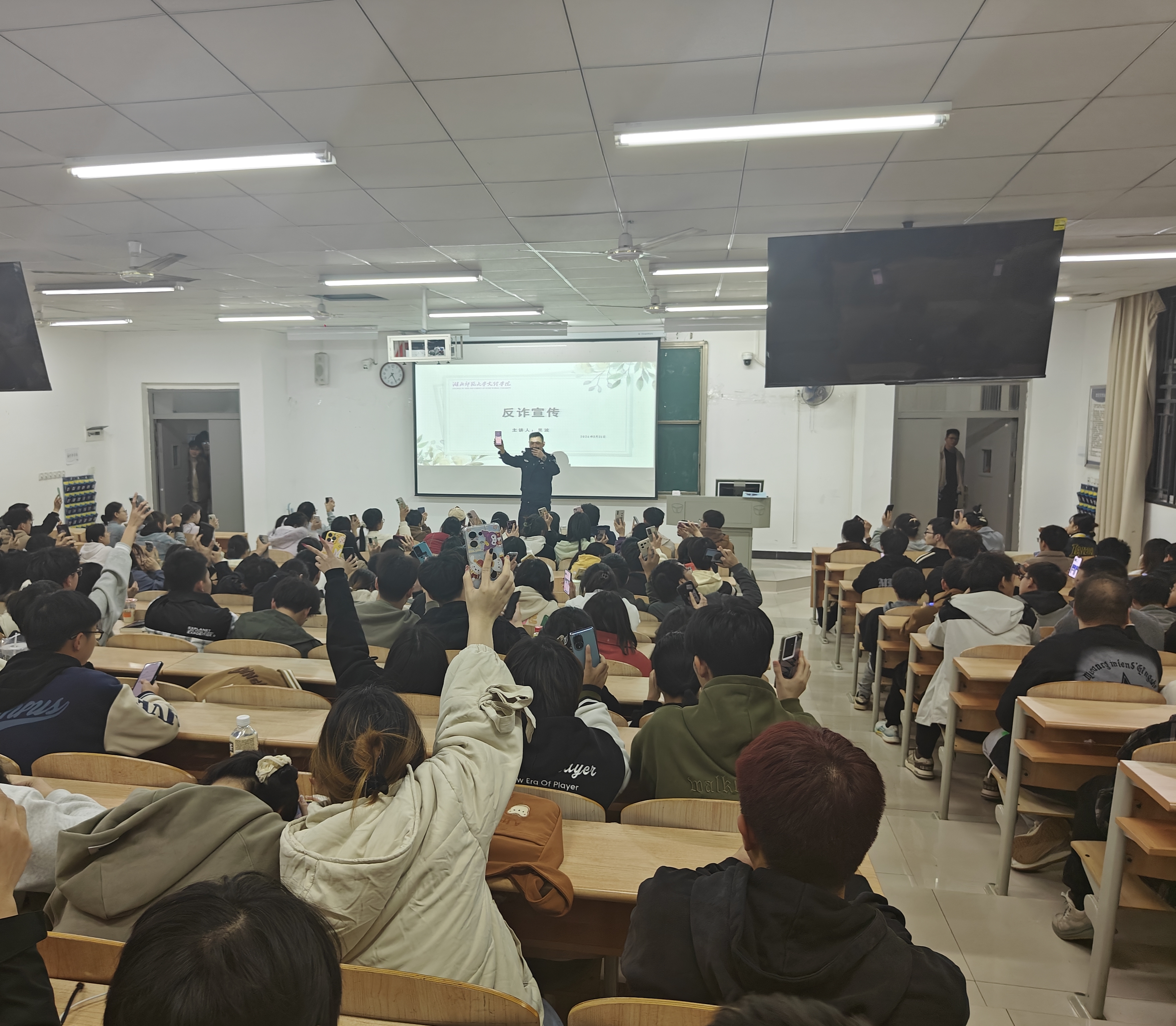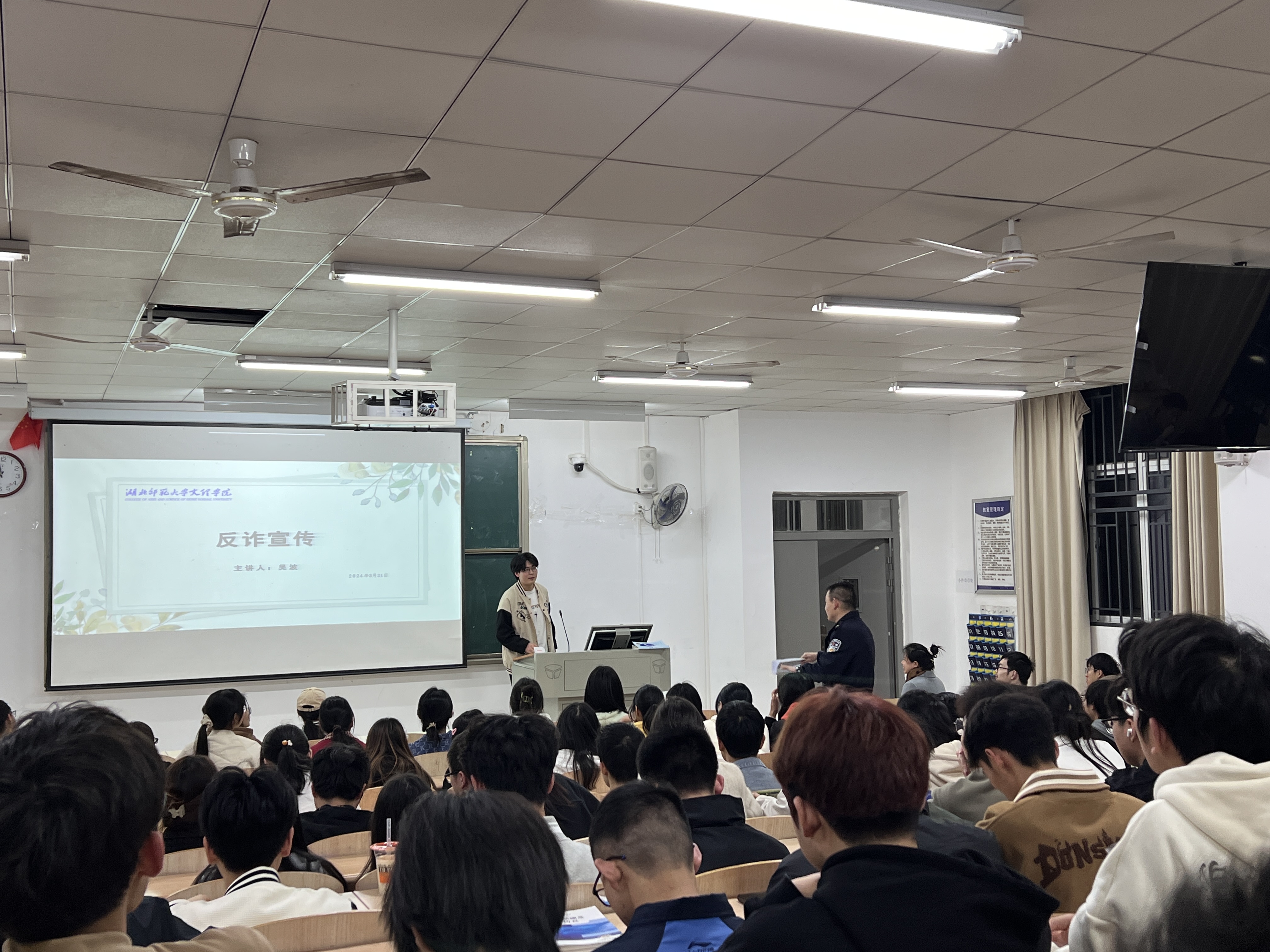 为深入推动8xbet(中国)创建平安校园工作,不断提升广大师生防诈意识和防骗能力,3月21日晚上7时,理工学部特邀汪仁派出所民警在教学楼1B-101,为约200名青年学子举行了“反电信诈骗”主题讲座,理工学部团总支副书记李哲昊老师,辅导员刘婉婉老师、胡兰捷老师、陆曦老师参加了活动。