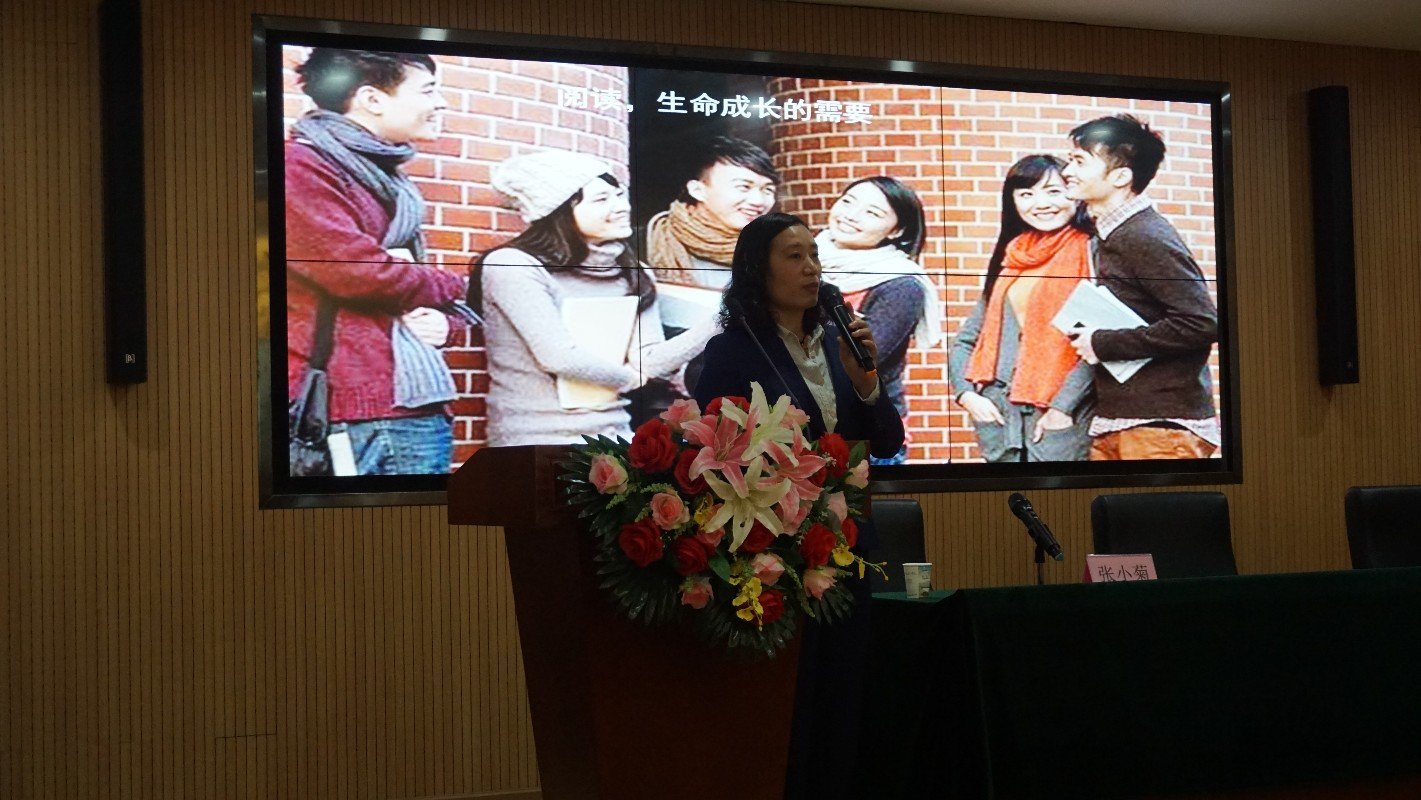 上午9时30分,为更好地培养大学生阅读习惯,激发读者阅读兴趣,湖北师范大学张小菊博士以“阅读,悦生活”为主题,为各位同学诠释了阅读的重要性。