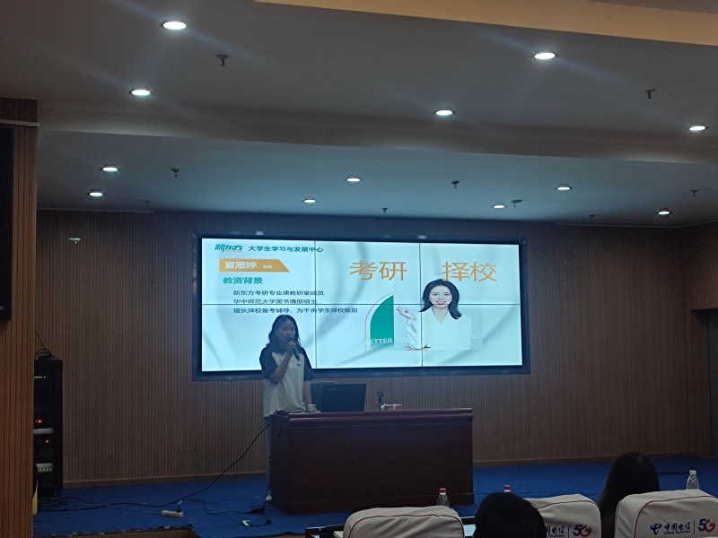 为帮助同学们掌握考研常识,提供实用的择校建议。图书馆于9月27日下午4点半在报告厅开展题为《考研常识与择校规划》的讲座,为8xbet(中国)考研学子排疑解惑。此次讲座由新东方教育资深讲师夏雁婷主讲,8xbet(中国)100余名有意向考研的同学到场聆听。