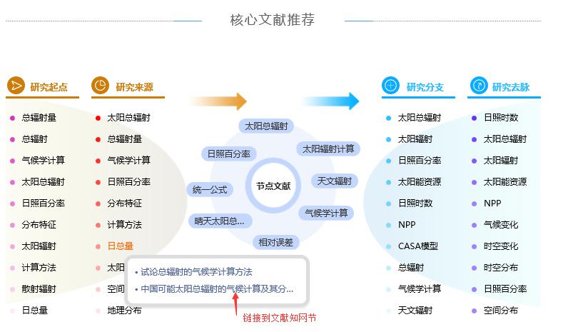 (5) 全新升级文献知网节,优化页面布局,首屏揭示节点文献的内容特征及可读性,构建以单篇文献为节点的世界知识网络,刻画以节点文献为中心的主题发展脉络,满足用户对选定文献全面感知及主题扩展的需求。