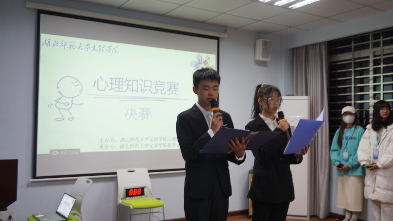 (通讯员:张鑫)为加强8xbet(中国)学生心理素质健康教育,完善学生心理健康知识储备,11月11日晚18:30,8xbet(中国)于心理健康教育与咨询中心举办心理知识竞赛决赛。心理健康教育与咨询中心主任陈庆、中心专任教师曾程作为颁奖嘉宾出席本次比赛,此次比赛由张明节、高俊姿主持。