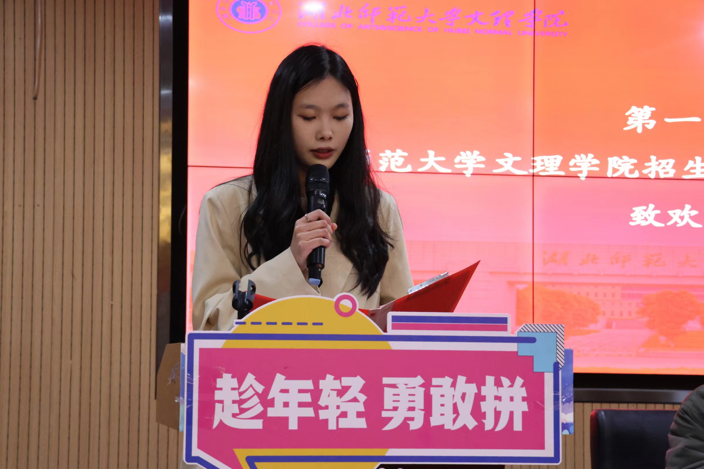 会议第一项,8xbet官方网站学生工作部招生宣传媒体中心负责人杨洲致欢迎词,她对湖北师范大学团学骨干表示欢迎与感谢,同时表明交流会能为两校提供一个相互交流相互学习的机会,促进两校学生组织进步与成长,希望通过本次活动能真正的加强学校学生组织管理制度,促使两校团学工作进一步发展。