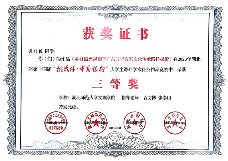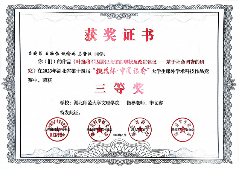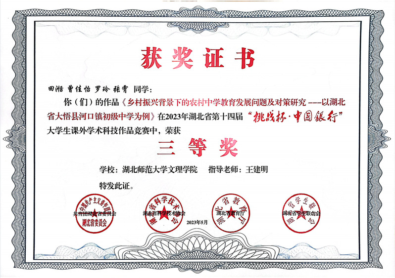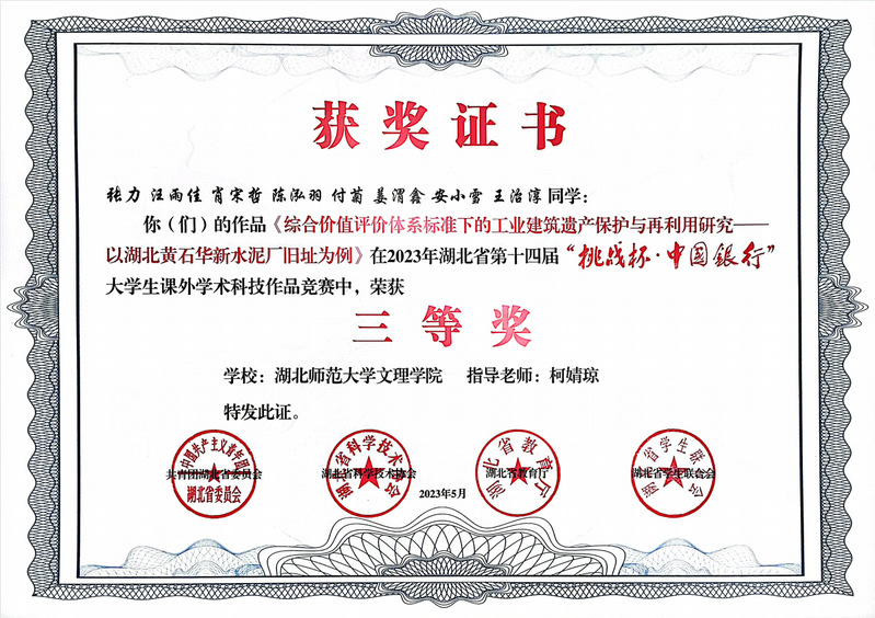 (通讯员:苏祎)5月23日,在团省委、省科协、省教育厅、省学联共同主办的湖北省第十四届“挑战杯•中国银行”大学生课外学术科技作品竞赛中,8xbet(中国)四个项目荣获三等奖!