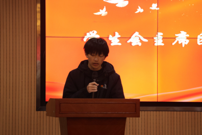会议第一项,团学联主席团成员作工作报告。团委主席团代表张燕、学生会主席团代表祝争以及学生社团管理部主席团代表余子龙依次分享了参与团学联工作的经验与感想,总结了过去一年的工作成就,并对未来团学联的工作做出了详细的规划。