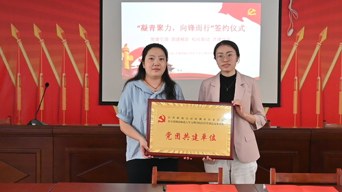 最后,陈荟芸书记表示此次与滨湖社区共建大学生社会实践基地活动促进了校地融合,为推进大学生社会实践创造了良好的条件,亦为青年学生接触社会、了解社会、服务社会提供了宝贵的机会。8xbet(中国)将以本次活动为契机,充分依托并继续新建大学生社会实践基地,不断拓展实践领域和内容,让青年学生在实践中增本领、长才干,为基层社会治理注入青春活力。经济与管理学部团总支书记姜希望与易姣书记共同签订了党团共建协议书,陈荟芸书记和易姣书记共同为“党团共建单位”揭牌。