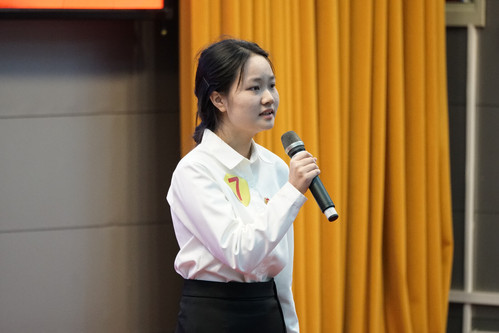 赵晓蕊以《追光而遇‘导’航青春》为题,用“含羞草蜕变为向日葵”的生动比喻,讲述了自己从迷茫到成长的蜕变历程。她以辅导员杨峰老师为引路人,在恐惧散退后破茧成蝶,最终实现传递薪火的转变,展现了新时代青年在思想引领下的自我突破与使命担当。作为特邀嘉宾出席的杨峰老师更是为这次宣讲增添了一份温情。