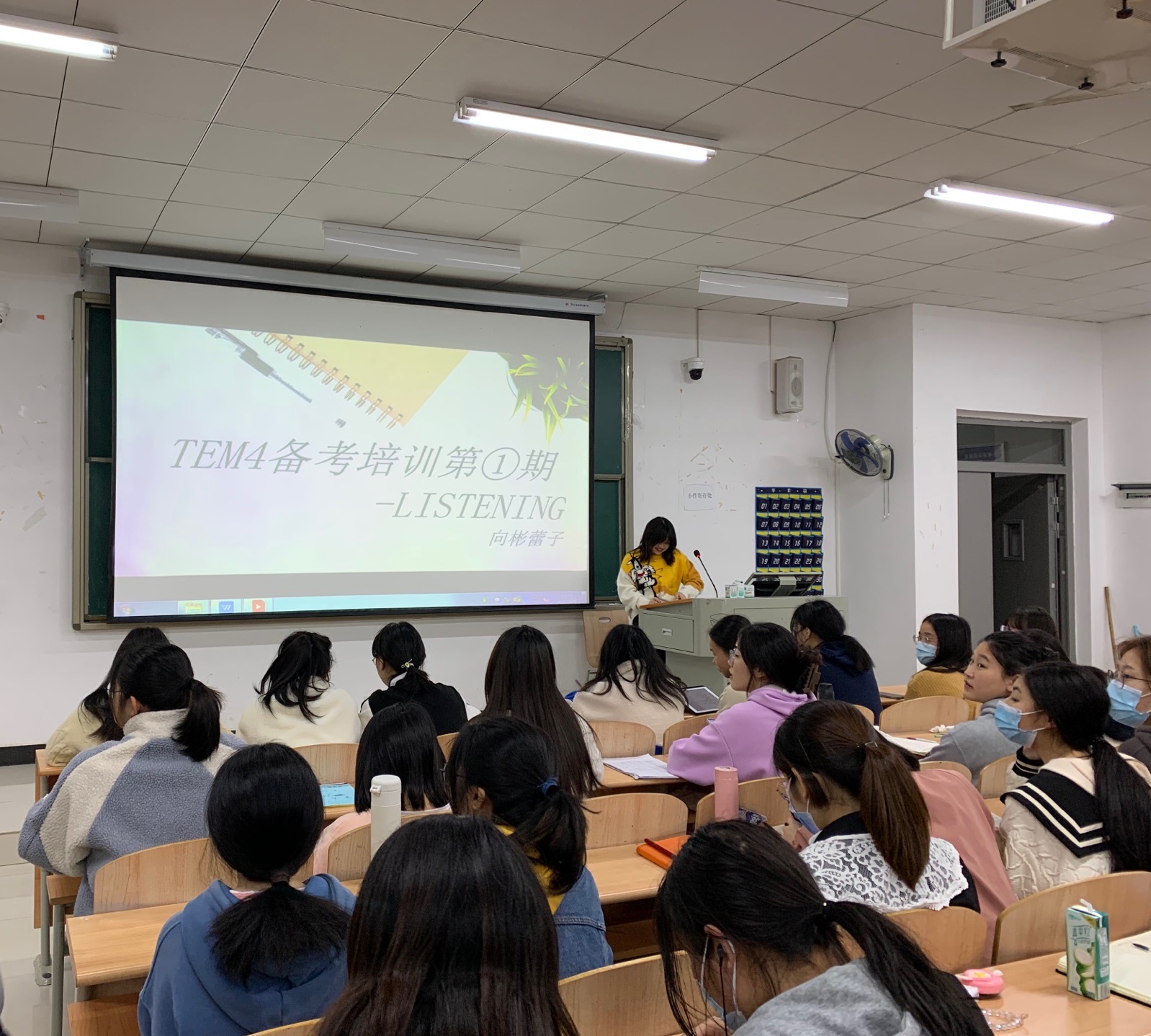 为了帮助8xbet(中国)英语、商务英语专业大二学生更好地迎接专四考试,人文学部英语组老师于4月1日晚上六点半开展了专四辅导讲座之听力篇,主讲人向彬蕾子老师主要从题型分值、听力技巧和学习建议三个层面给学生们进行讲解。讲座生动实用,学生一致好评。衷心祝愿学生们都能在专四考试中取得满意的成绩!