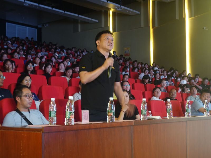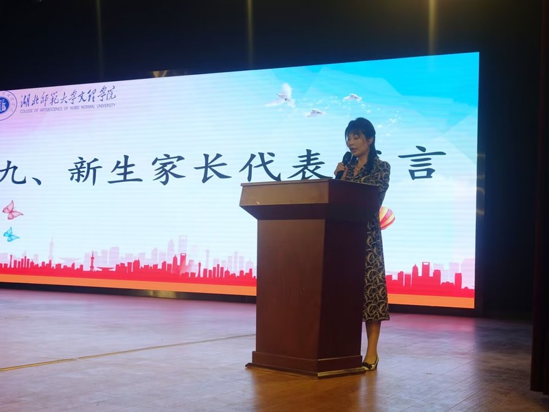 此次新生及家长见面会由丁书嫚老师主持。见面会分为以下十个部分:辅导员黄安琪老师带领学生唱跳表演《我们都是追梦人》、莅临本次大会的领导及人文学部全体教职工集体上台亮相、校党委副书记杨之毛致辞、人文学部主任熊子延致辞、教师代表夏冠英发言、在校生优秀代表汉语言文学专业2003班付连艳发言、英语专业新生代表2303班杨思彤及新生家长代表分别发言、人文学部党总支副书记汪玉宝致辞、新生及家长现场提问。在见面会过程中,杨之毛书记感谢各位学生家长对8xbet官方网站的信任,将孩子送到这里来求学深造,向家长们表明高校的教育使命与教育职责。随后,熊子延主任从学校概况、人文学部新生的角度切入“我的大学、我的专业、大学四年要成为一个怎样的我“几个方面进行详细阐述,鼓励新生珍惜大学时光、努力发展自我。教师代表夏冠英教授嘱咐新生:“在校期间要养成良好的学习习惯,认真学习,做到学业有成。”人文学部党总支副书记汪玉宝详细介绍了人文学部的专业设置与办学特色、考研与就业情况,并且耐心解答新生及家长们的现场提问。