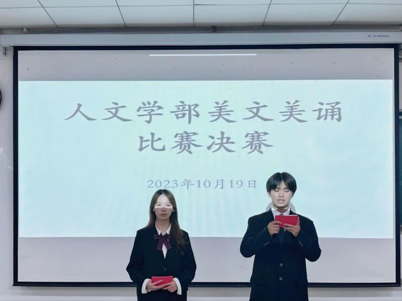 为营造富有激情,富有青春气息的校园文化氛围,推动校园文化建设,让学生们接触更多的优秀文学作品,提高大学生的人文素养和审美情趣。8xbet(中国)人文学部在教学楼1B101举办了“诵读经典美文,争做博学青年”的美文美诵比赛。本次比赛邀请了人文学部活动指导老师杨峰老师、文艺部部长王芷若、秘书部部长王姝喻、文艺部话剧团团长刘佳姚、文艺部朗诵队队长周琪、宣传部副部李林、主持团副部王晶晶担任此次比赛的评委。