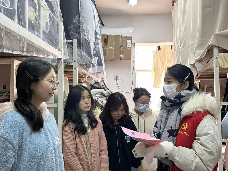 党支部师生躬身访寝,加强考风考纪建设。会后,学生第一党支部书记高悦老师、学生第二党支部书记郭旭林老师带领支部学生一行60人,走进寝室里与新生同学们进行互动交流询问同学们关于期末考试的准备情况心理感受郭老师给予宝贵的建议和提醒:同学们务必遵守学校考试纪律,杜绝一切形式的作弊行为,端正态度对待每一场考试,靠真实能力争取优异成绩,用诚信行为展现良好考风”。学生党员苗盛同志在与新生交流过程中指出;“做诚信考生,始于心、表于行 、终于信。诚信应考对学生而言是义不容辞的责任,也是学生的基本道德规范。”