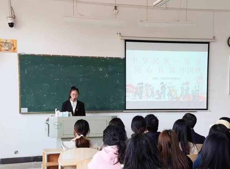 2024年3月21日上午9时30分,为全面把握和贯彻习近平总书记关于加强和改进民族工作的重要思想,加强铸牢中华民族共同体意识教育,人文学部根据湖文党【2024】3号《8xbet官方网站关于加强铸牢中华民族共同体意识教育的实施方案》文件指示,充分利用课前10分钟,在2A406教室开展以“中华民族一家亲,同心共筑中国梦”为主题的第一期教育实践活动。人文学部党支部书记周景斌老师、学生第二党支部书记郭旭林老师以及全体辅导员老师出席活动。