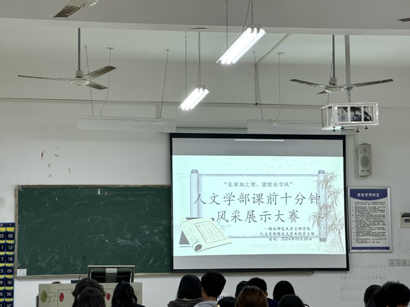 为深入推进课前十分钟主题活动的开展,人文学部组织团学于2024年10月28日19时——20时30分在2A304教室举行了“弘求知之智,建优良学风”课前十分钟风采展示大赛。
