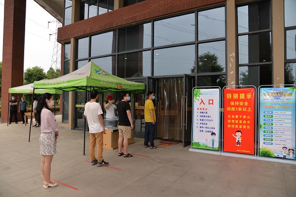 实战演练阶段以“学生”入校为起点,分别以进入校园、办理毕业手续、入住学生宿舍、食堂就餐等为模拟场景,演练了不同场所的健康检测、秩序维持、进出路径、必要流程及突发情况应急处置等环节。