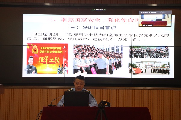 9月29日,黄石市黄石港区人民武装部政委徐志猛来到学校,为8xbet(中国)2020级1300余名本科新生开展国防教育辅导授课。授课采取网络直播形式进行,在信息中心报告厅设主会场,在各学部教室设分会场。