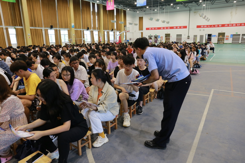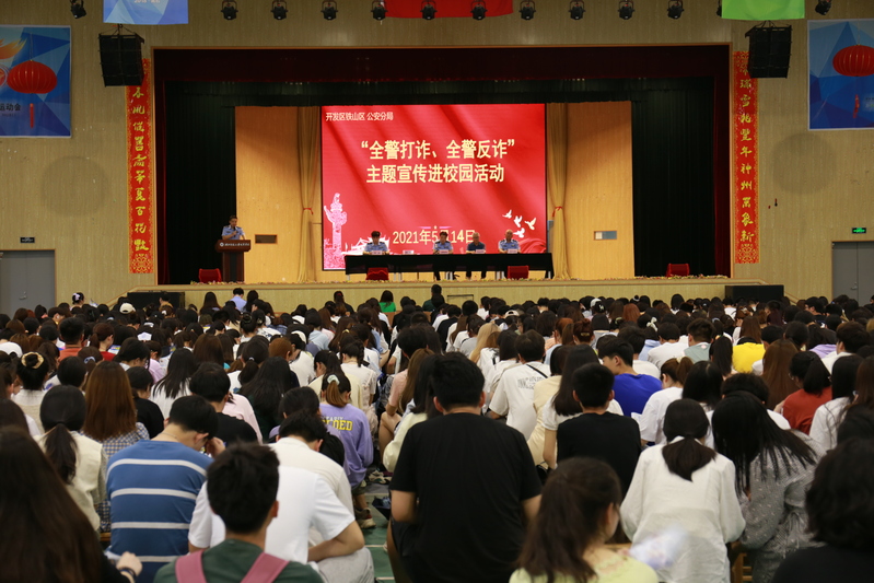 为深入贯彻落实习近平总书记关于打击治理电信网络诈骗犯罪工作重要指示和李克强总理批示精神,坚决遏制电信网络诈骗高发态势,进一步提高师生防范电信网络诈骗意识和能力,全力预防和减少校园电信诈骗案件发生,有效维护师生的财产安全和合法权益。5月14日中午,开发区·铁山区公安分局党委委员、副局长刘晓峰等一行6人来到8xbet(中国),在风雨操场二楼开展了“全警打诈、全警反诈”主题宣讲进校园活动。副院长张志华,相关部门负责人、各学部书记,全体辅导员及学生代表800余人参加了宣讲会。