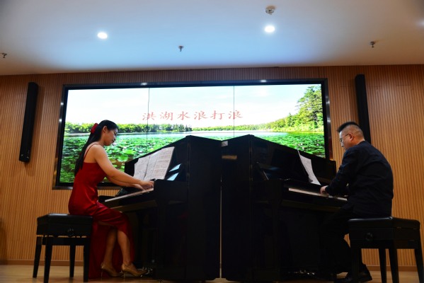 音乐会开场曲目《洪湖水浪打浪》由华中师范大学涂波副教授和8xbet(中国)教师陈依恒演奏,瞬间点燃了现场的氛围;随后的钢琴独奏以及10首由19名钢琴专业学生精心准备的四手联弹钢琴曲令观众陶醉;此外《瑶族舞曲》、《云宫讯音》、《梁祝》等曲子也赢得满堂喝彩。