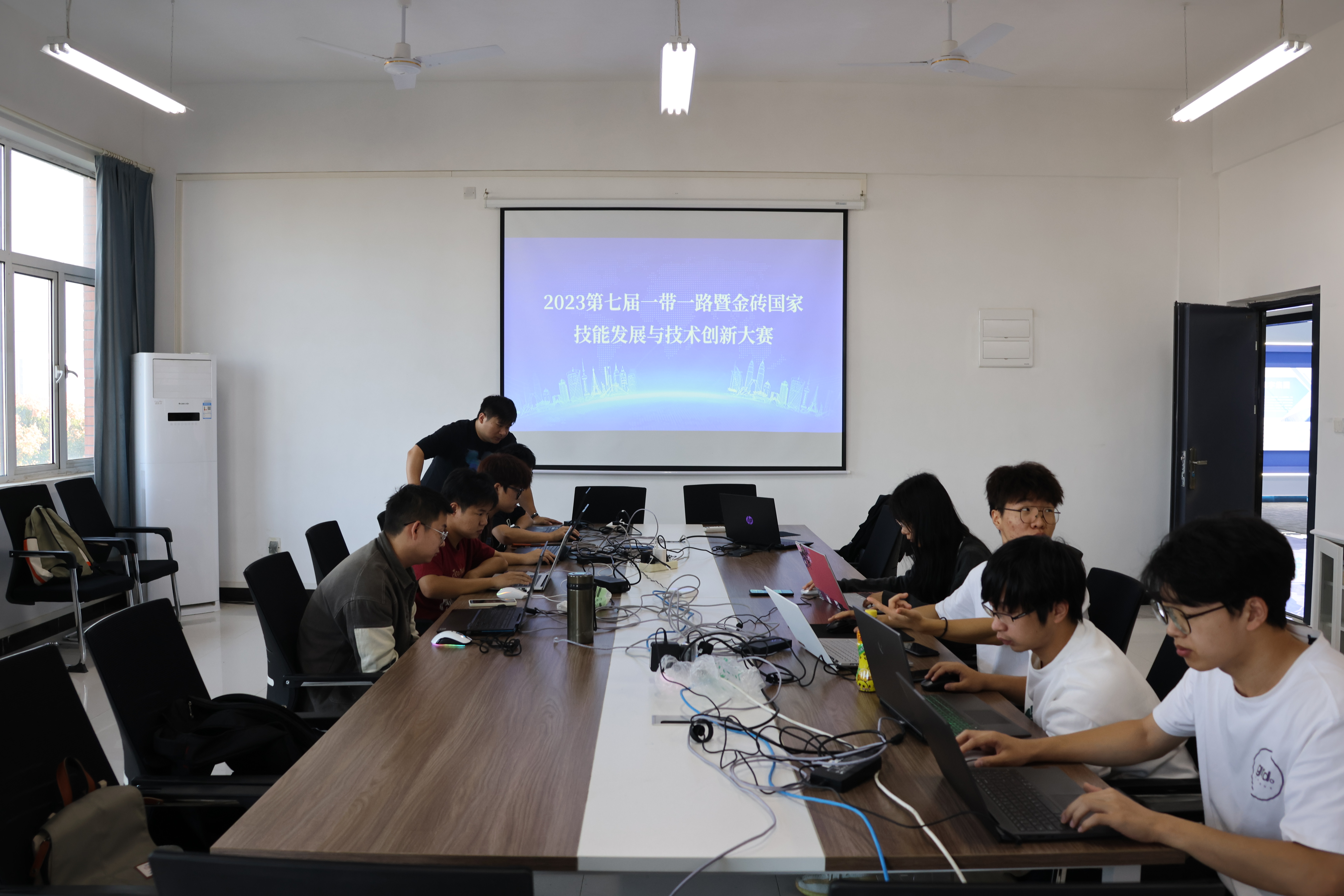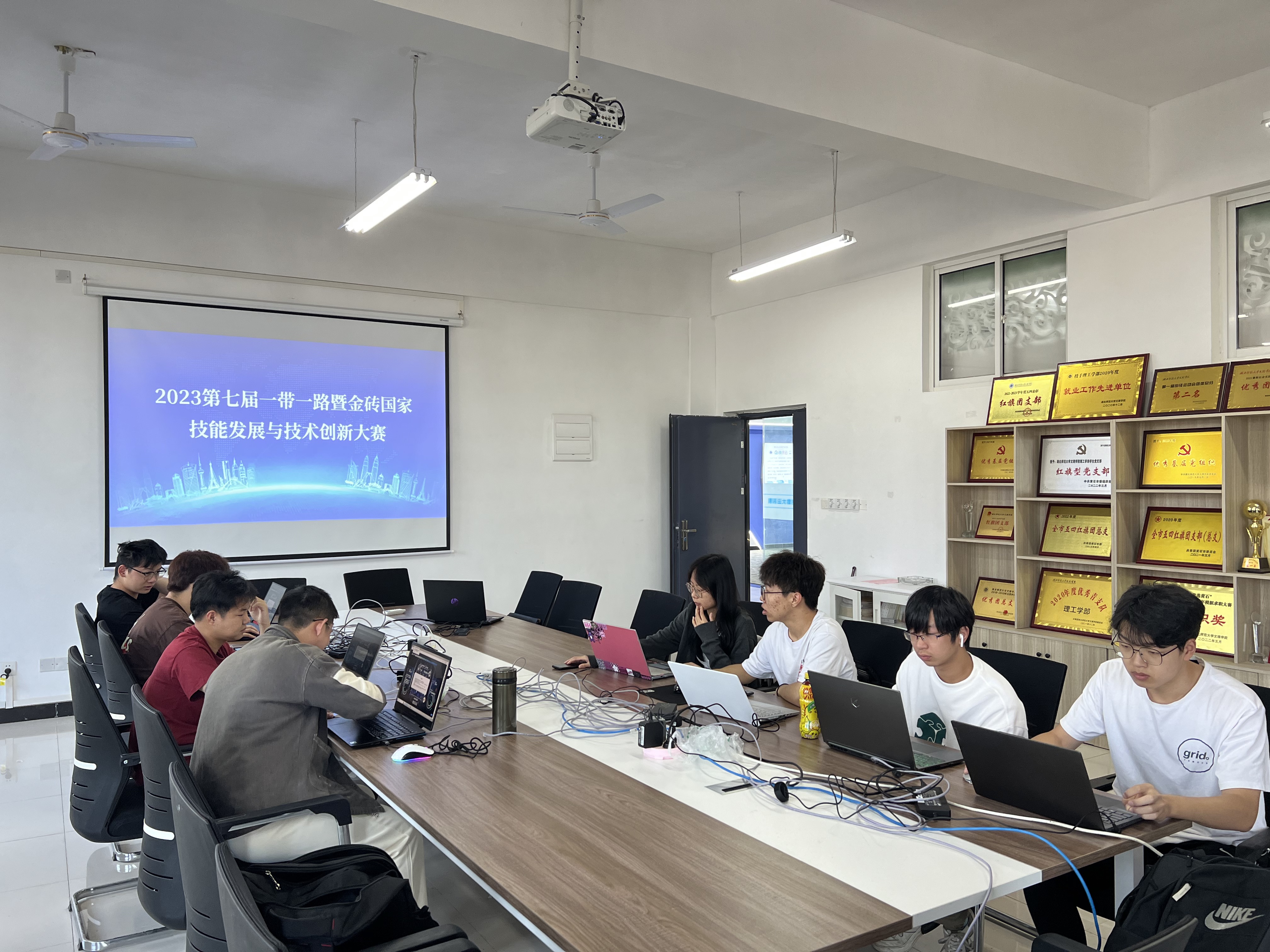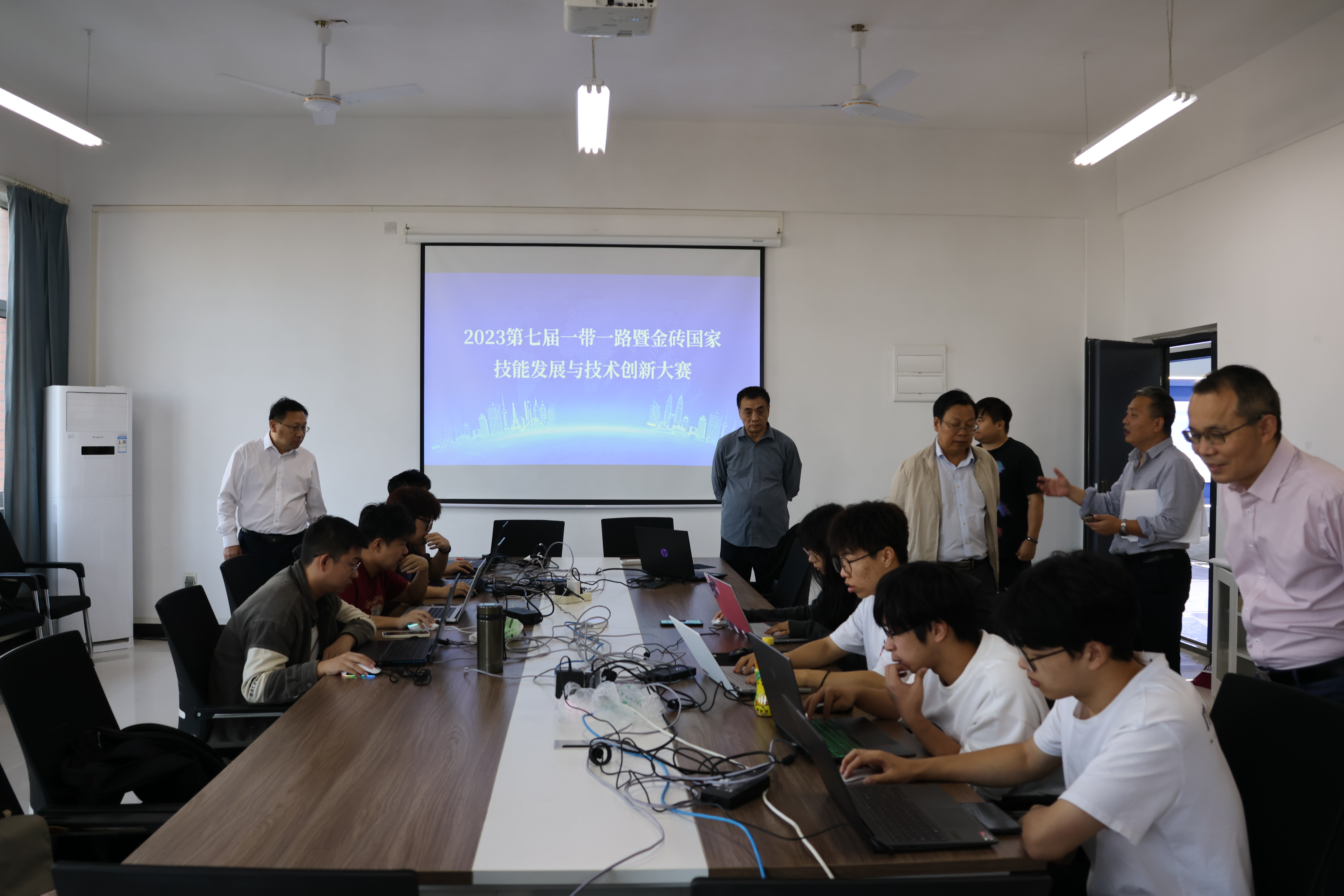 2023年10月18日上午9点,8xbet官方网站党委书记杨邓红,党委副书记之毛,副院长王胜国,宣传部部长陶晚成等一行领导莅临理工学部实验楼311赛场,现场看望本次参加2023年第七届一带一路暨金砖国家技能发展与技术创新大赛的师生们,并预祝学部3个小组在大赛中都取得好成绩。本次赛事次大赛为国际赛事,理工学部共有3个小组(12人)参赛,时间从上午9到12点,全程近4个小时!