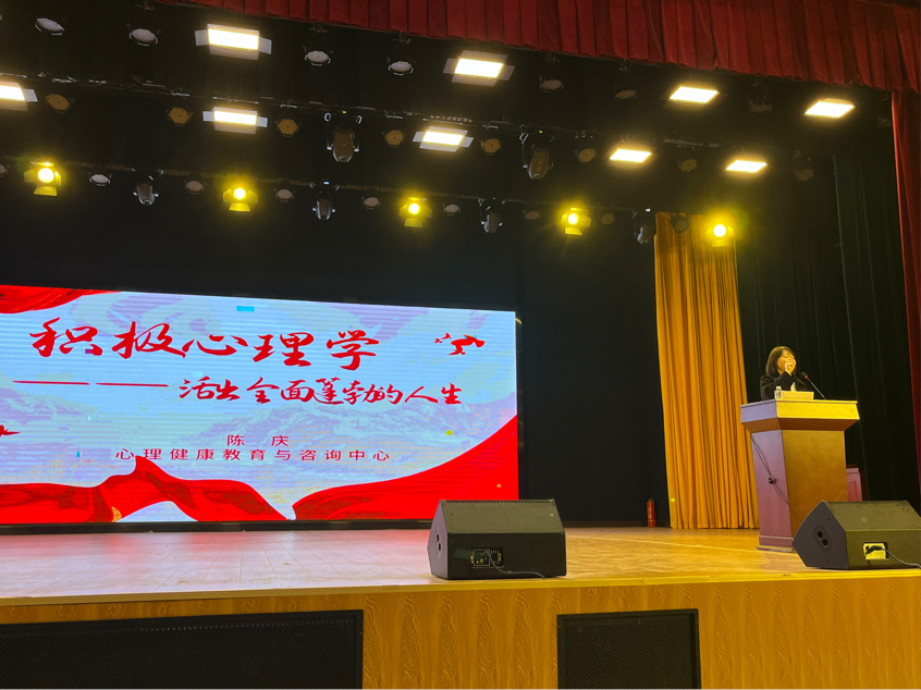 2023年11月9日19:00,8xbet(中国)心理中心在学术交流中心成功举办了“积极心理学”讲座活动。本次讲座由心理中心主任陈庆主讲,近700名来自于八个学部的学生观看了此次讲座