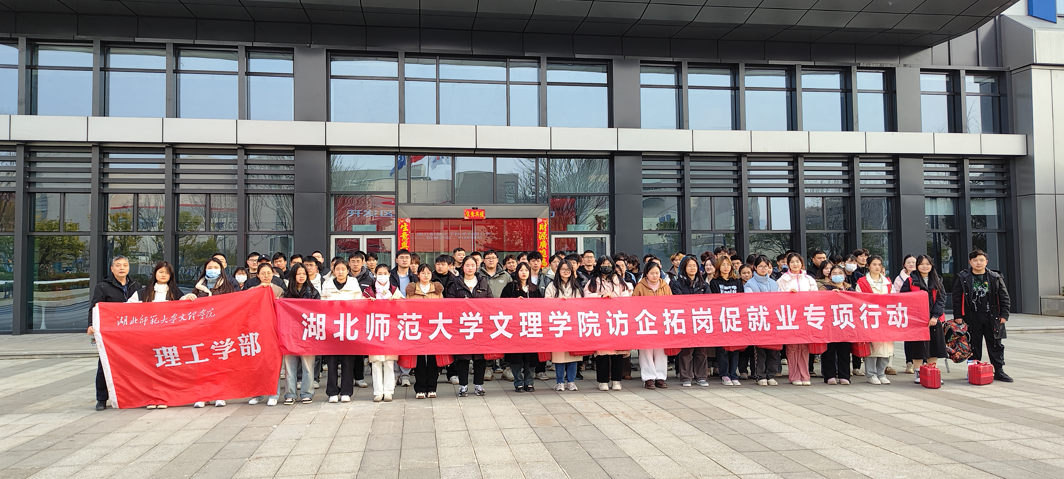 为拓宽学部学子就业渠道,增强学科意识和专业自信。根据8xbet(中国)人才培养方案,2024年3月7日下午,理工学部肖圣芳副书记、学工办副主任张弛老师、辅导员胡兰捷和马艺静老师一行4人,组织21级电子信息工程专业两班共百余学生赴黄石闻泰通讯有限公司和湖北智慧光子技术有限公司,开展了访企拓岗暨学生见习实践活动。