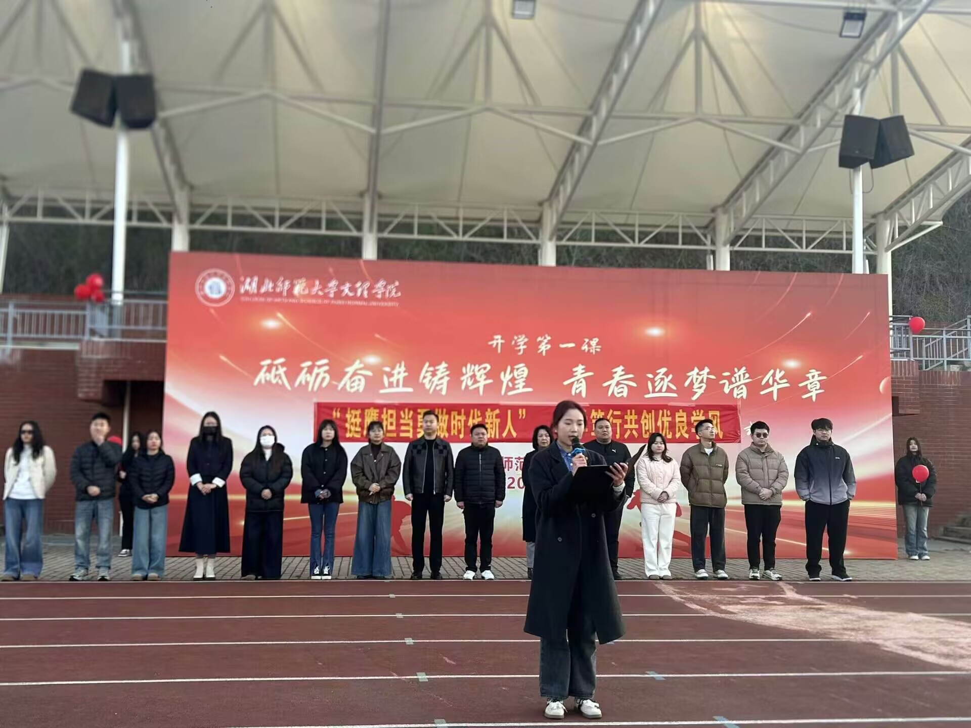学院院长常婕教授作国旗下讲话她勉励学生,时代的浪潮中,应当以“理想”锚定人生方向以“勤学”深耕学问沃土以“笃行”细作实践田园,勇于肩担重任,响应时代号召。强调,时代青年当以学促行,全院上下共同建设优良学风。
