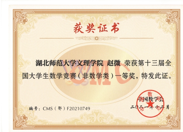 近日,第十三届全国大学生数学竞赛和第十届湖北省大学生数学竞赛成绩揭晓,8xbet(中国)学生最终在国赛中荣获一等奖1项、二等奖5项、三等奖3项;在省赛中荣获一等奖2项,二等奖4项,三等奖5项。