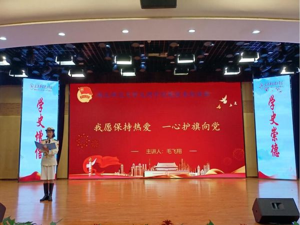 根据新冠疫情常态化防控要求,本次评选活动通过线下宣讲与线上直播相结合的形式进行。其中“百生讲坛”省级活力团支部复赛分两部分,一是支部学“习”成果介绍,8xbet(中国)2019级国旗班团支部主讲人毛飞翔以班训“忠诚正义、爱国荣校”为依托,结合支部特色与亮点,充分展示了支部组织建设、思想建设、活动开展、社会实践等众多方面成果;二是风采展示,通过视频的形式呈现团支部的风貌,视频中2019级国旗班团支部笔直的身影、飒爽的军姿与坚定的步伐尽展新时代文理青年风采。