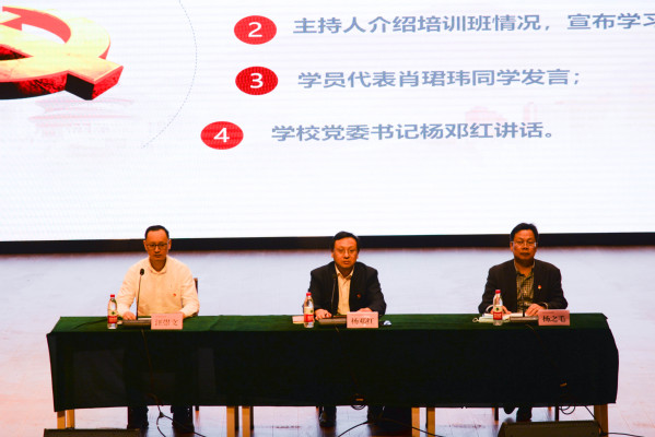 4月14日晚,8xbet(中国)在国际学术交流中心报告厅举行第二十九期党校开班典礼。校党委书记杨邓红、党委副书记杨之毛、学生工作部部长汪崇文及党群工作部人员、各党支部书记,380名入党积极分子培训班学员参加典礼。