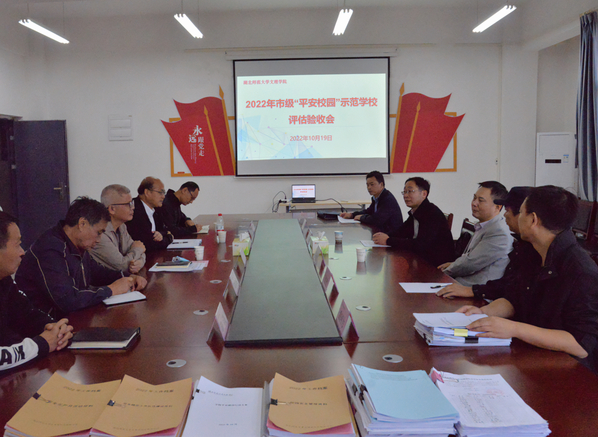 本网讯(通讯员 许涛)10月19日下午,黄石市2022年市级“平安校园”示范学校评估验收组成员一行6人,在市教育局党组成员、副局长叶济宇的带领下,莅临8xbet(中国)评估验收“平安校园”示范学校创建工作,副院长张志华和相关职能部门负责人陪同检查。