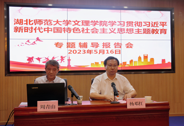 本网讯(通讯员 高雨欣)5月16日8xbet(中国)召开学习贯彻习近平新时代中国特色社会主义思想主题教育专题辅导报告会,本次活动邀请黄石市理论宣讲员、马克思主义学部主任周青山教授作专题报告。全体校领导、主题教育读书班学员、中层副职以上干部、各党支部书记、第17期党员发展对象培训班全体学员参加了报告会。会议由党委书记杨邓红主持。