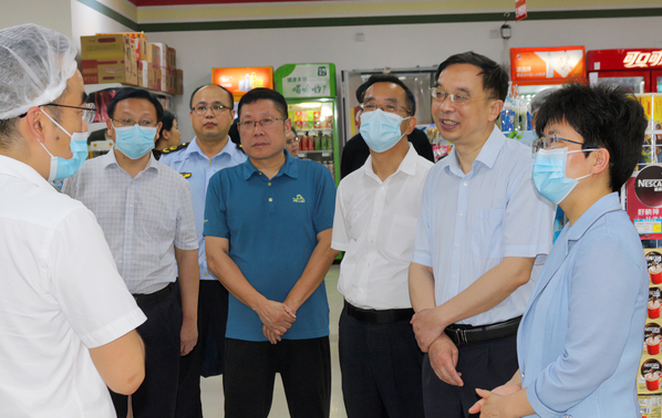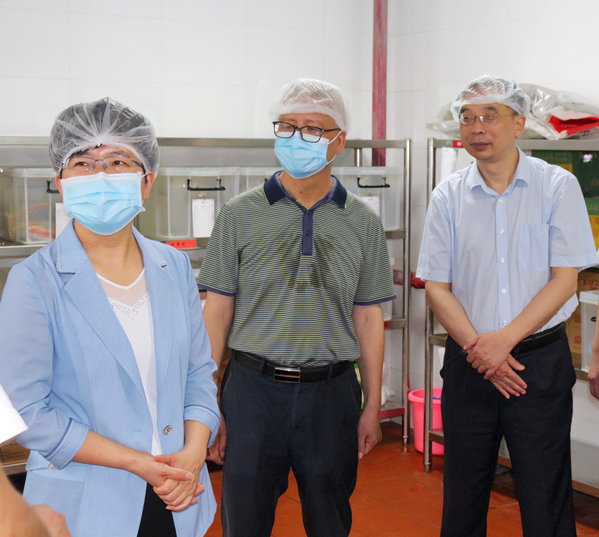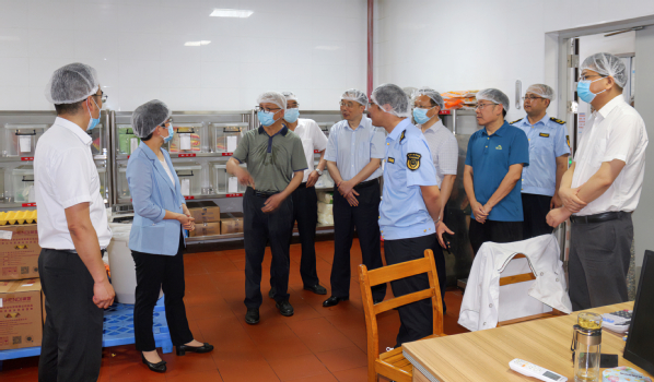 本网讯(通讯员涂亦乐)为进一步增强食品安全意识,筑牢食品安全防线,全面推进食品安全“两个责任”工作落实见效。5月30日上午,市委常委、市委宣传部部长周庆荣率市市场监管局、开发区·铁山区相关部门一行深入8xbet(中国)食堂开展食品安全检查工作。院长李开灿、常务副院长杨学斌、党委书记杨邓红、副院长张志华及相关部门负责人陪同检查。