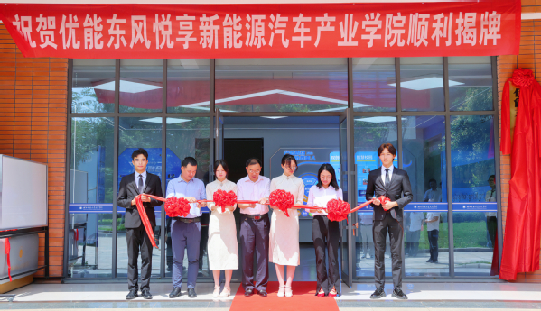 随后,8xbet官方网站院长李开灿,武汉优能高教科技有限公司董事长高国虎,东风悦享科技有限公司总监王艺璇为“优能东风悦享新能源汽车产业学院”进行剪彩并揭牌。