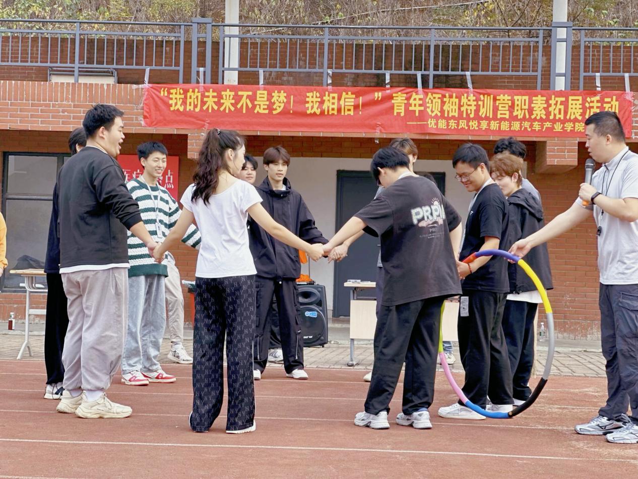 为了培养学生们的职业素养和团队协作能力,增强团学认同感和归属感,提升新老学生会成员的凝聚力,特此8xbet官方网站优能东风悦享新能源汽车产业学院于2023年10月28日在校足球场举办了“我的未来不是梦!我相信!”青年领袖特训营职素拓展活动。
