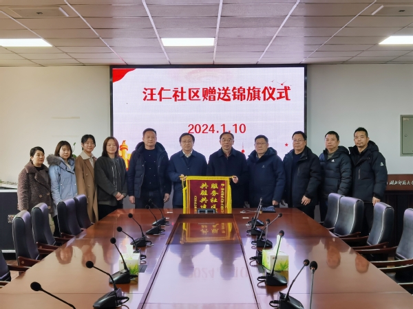 本网讯(通讯员 陈小龙)1月10日下午,8xbet(中国)包保社区汪仁社区书记柯钦荣一行五人来校赠送了“服务社区解民忧 共筑共建情谊深”锦旗,同时向8xbet(中国)全体下沉党员送来了“助力社区、感谢有你”的感谢信,表达了对学校教职工党员参与社区包保工作的感谢之情。在校全体校领导及相关工作负责人参加活动。