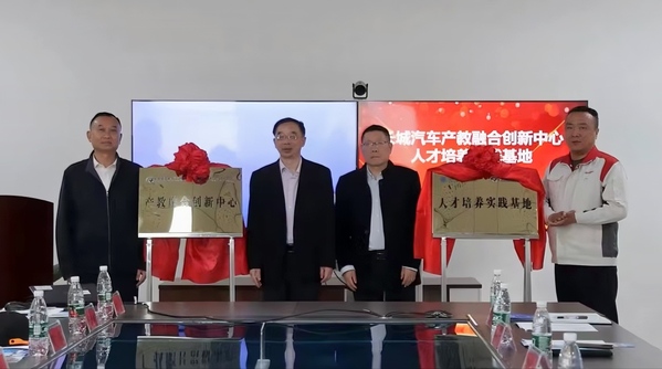 交流结束,杨学斌与李志援分别代表双方就校企合作签约,李开灿、许加兵、杨学斌、李伟四位领导为长城汽车“产教融合创新中心”“人才培养实践基地”揭牌。