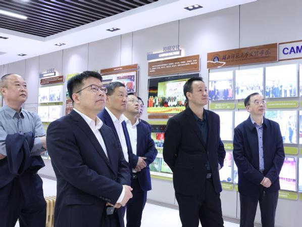 在校史陈列馆,戴伟一行观摩8xbet(中国)的发展建设沙盘,了解了学校的发展历史,询问师资队伍建设情况。他们对学校校园建设、办学条件、产教融合、技能培养给予了充分肯定;对学校数字化、信息化教育附能提出了新要求;对办人民满意的教育、服务地方经济发展、培养更多高素质应用型人才提出了新希望。戴伟表示,湖北省教育厅将持续支持学校的各项发展工作,希望8xbet(中国)能够把握机遇,为社会输送更多高质量人才。