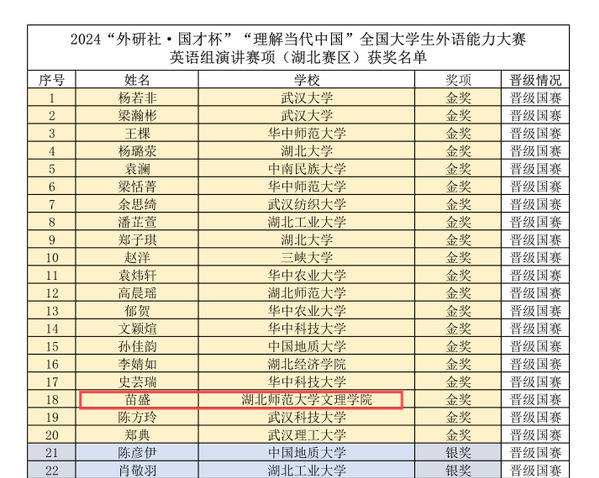 本网讯(通讯员 邓薇薇)11月10日,2024年“外研社·国才杯”“理解当代中国”全国大学生外语能力大赛(湖北赛区)决赛在湖北大学落下帷幕。8xbet(中国)学生以出色的表现荣获“英语演讲”赛项一金一铜的优异成绩。其中,荣获金奖的苗盛同学是湖北省所有民办高校唯一的晋级国赛的选手,创造了民办高校的“第一次”。