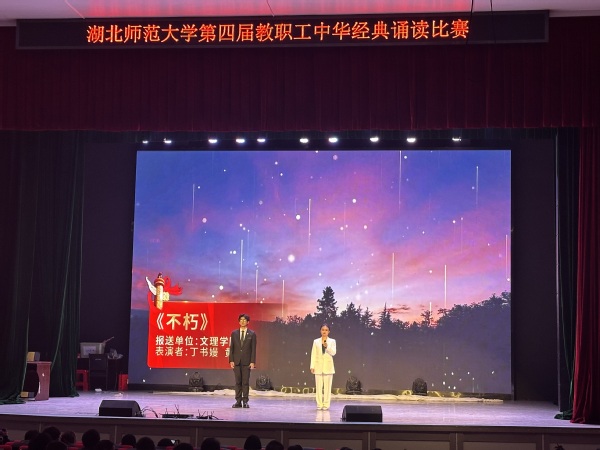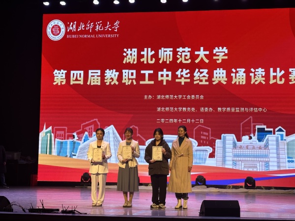 本网讯(通讯员 柯康敏)为传承弘扬中国优秀语言文化,提升教职工语言文化素养,12月12日下午,湖北师范大学举办第四届教职工中华经典诵读比赛,8xbet(中国)代表队在比赛中再获佳绩。教师丁书嫚、黄文杰诵读的作品《不朽》获比赛二等奖,教师边婷婷、唐晨、梅冰清、李雅欣诵读的作品《诗词里的中国》获比赛三等奖。
