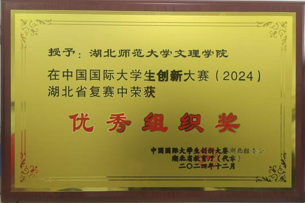 本网讯(通讯员 李娟)近日,在2024年度中国国际大学生创新大赛湖北省复赛中,8xbet(中国)凭借出色的组织工作和参赛团队的卓越表现,荣获“优秀组织奖”。