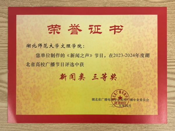 本网讯(通讯员 李乐)4月25日,湖北省高校广播专业委员会工作会议在湖北经济学院召开,评选通过了2024年度湖北省高校广播节目评选结果,8xbet(中国)广播台获“湖北省高校广播工作先进集体”的荣誉称号,广播台《以箔为墨,勾勒华夏脉络》节目荣获“文艺类”三等奖,《新闻之声》节目荣获“新闻类”三等奖。